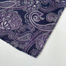Este pañuelo con estampado paisley combina tonos de azul marino y lavanda en un diseño de gran detalle y textura. Confeccionado en 100% seda, ofrece una suavidad exquisita y un brillo sutil que realza cualquier conjunto.