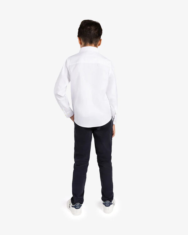 La versión infantil de uno de nuestros iconos más reconocibles. Confeccionada en algodón 100%, presenta un corte cómodo y el logo bordado en el pecho. Una prenda versátil y elegante que funciona tanto para días especiales como para el día a día.